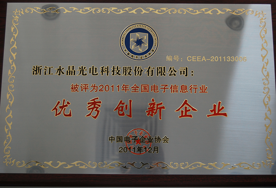11.A-87 浙江水晶光電科技股份有限公司被評(píng)為2011年全國(guó)電子信息行業(yè)優(yōu)秀創(chuàng)新企業(yè)201112