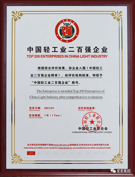 2021年度中國(guó)輕工業(yè)二百?gòu)?qiáng)企業(yè)