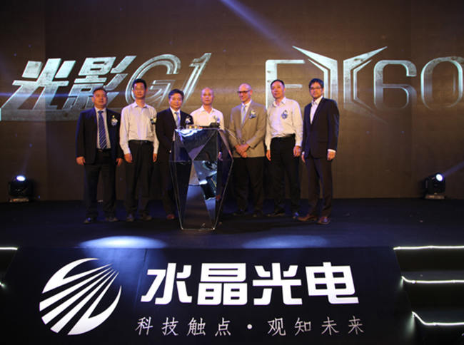 2016年10月13日下午,浙江水晶光電科技股份有限公司在杭州香格里拉大酒店召開新品發布會。在本次發布會上,推出了兩款光學利器——EX60超短焦投影光學模組和“光影G1”巨幕觀影光學模組。發布會現場,由水晶光電執行董事兼總經理范崇國先生作開題演講后,無人機攜著此次發布的兩款黑科技產品閃亮登場,接著TI大中華區總經理WilliamBommersbach先生、安華總經理王凡博士和晶途光電總經理張文字博士,依次就DLP技術、微投發展歷程與未來市場預期以及新型顯示領域的發展方向作了精彩報告。